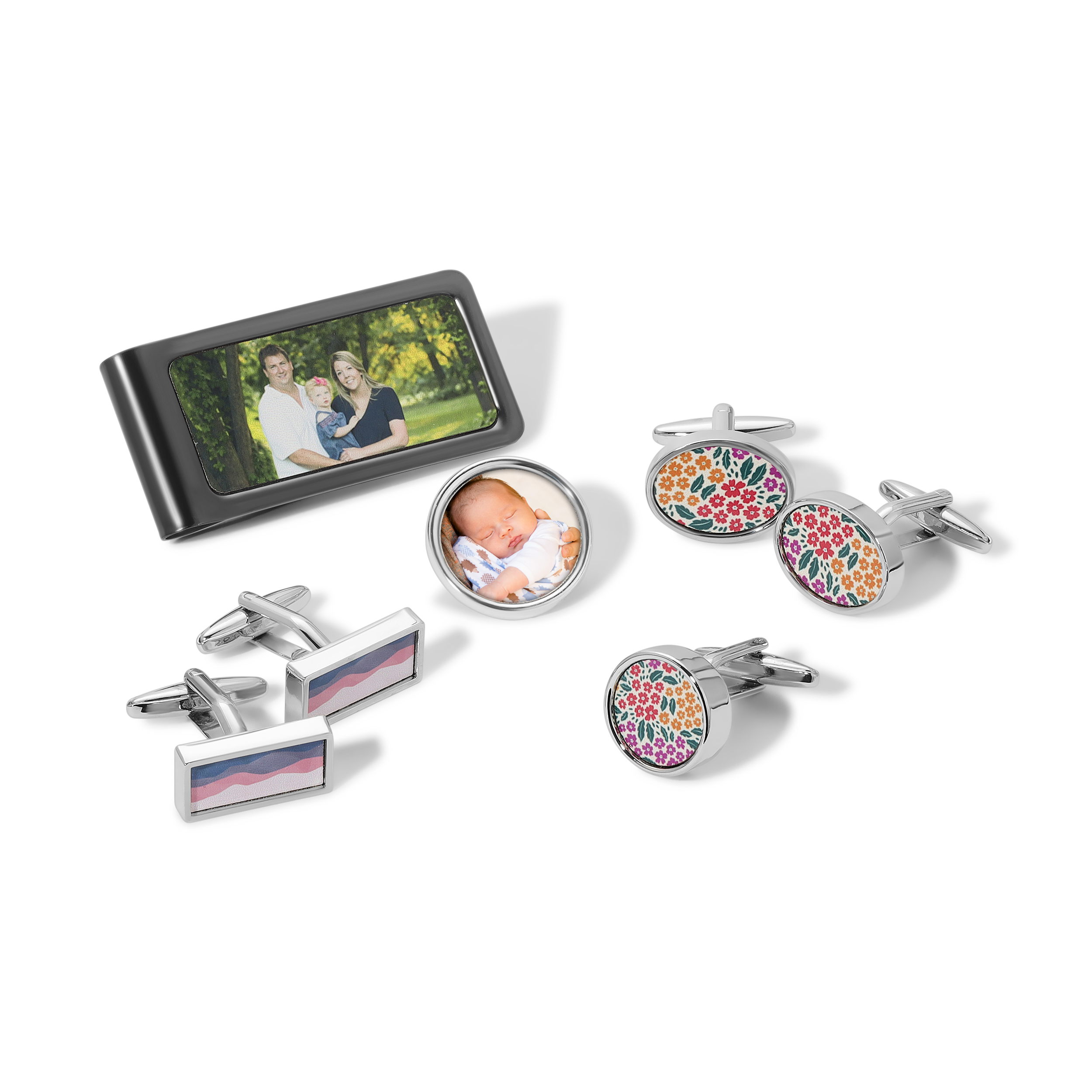 We offer a wide range of accessories, from lapel pins to cufflinks and money clips. Contact for pricing.